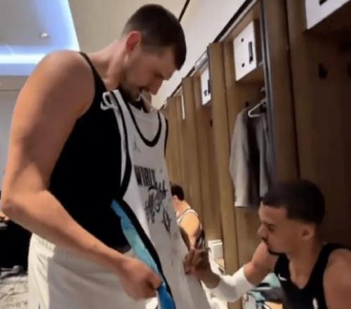 约胖子竟然赛后还盛意思向文班亚马要署名。