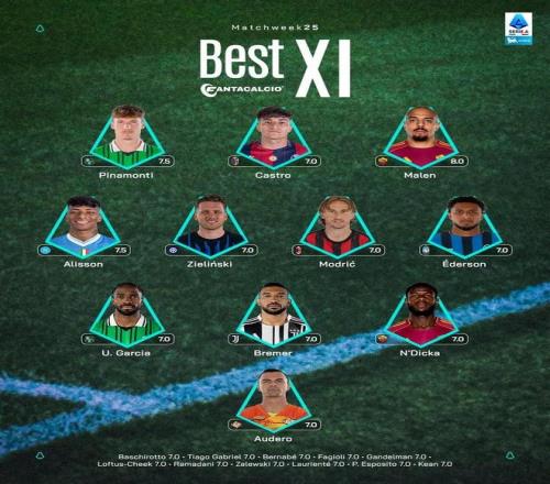 Òâ¼×¹Ù·½Ðû²¼ÁËÁªÈüµÚ25ÂÖµÄ×î¼ÑÕóÈÝ£¬ÄªµÂÀïÆæ¡¢ÔóÁÖ˹»ù¡¢²¼À×Ĭ¡¢ÂíÂ×ÔÚÁÐ ¡£