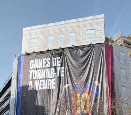 马克·西里亚来了两招,都跟梅西有关。第一招就是用梅西快十年前读秒绝杀皇马后,在伯纳乌晒巴萨球衣的名时势,打印成巨幅海报,挂在大楼上。第二招就是现场模拟梅西的这个庆祝行动,为自己拉票。