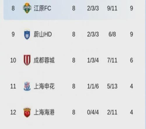 °ÑÑÛ¹âͶÏòÕû¸öÑǹڻý·Ö°ñ£ºÉϺ£É껨1ʤ1ƽ6¸º»ý4·Ö£¬³É¶¼ÈسÇ1ʤ3ƽ4¸º»ý6·Ö¡£Öг¬BIG3£¬ºÏ¼Æ½öÈ¡µÃ2³¡Ê¤Àû£¬°ü°ì¶«ÑÇÇøµ¹ÊýǰÈý¡£