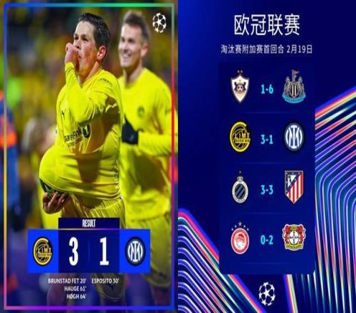 北京时间2月19日4点 ,25-26赛季欧冠镌汰赛附加赛首回合 ,挪威球队博德闪灼坐镇主场迎战国际米兰 ,乐成收获3-1胜利。