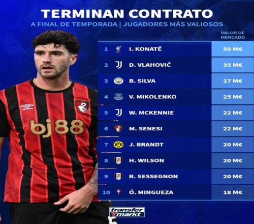 在夏日转会窗购置新援 ,是许多豪门提升实力的主要途径。不过也有许多的队员 ,来到了职业生涯条约的末年因此 ,他们有自由身脱离的时机 ,这不但会降低转会的价钱也会给他们的生涯 ,制造新的时机。现在来看 ,德国转会市场也是盘货出了一些身价相对较量高的、合约年球员比照 ,其中利物浦的科纳特排名第一 ,他小我私家身价抵达了5000万欧元。