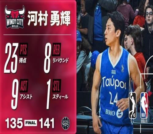 万能身手,河村勇辉G联赛34分钟拿到23分8板9助,三分5中4