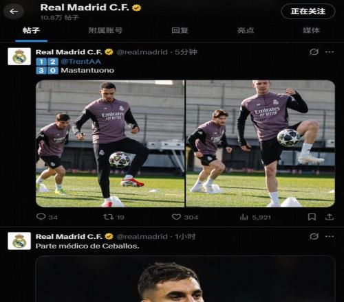 皇马官推在这条致歉新闻宣布后更新了阿诺德和马斯坦托诺的训练照,此前宣布了塞瓦略斯的伤情通告。