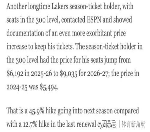 ÉÐÓÐÌú¸ËÇòÃÔ£¬ÄÇ¿ÉÊdzÖÓÐ300ÇøÓò¼¾Æ±µÄÀϽ­ºþÁË ¡£Ëû¸øESPNÌṩÁËÆ±¾Ý¼Í¼£¬ÕâÒ»¿´£¬ºÃ¼Ò»ï£¬ÄÇÕÇ·ù¼òÖ±ÄܰÑÈËÏÅÔÎÒÑÍù£¡2025 - 26Èü¼¾£¬ËûÕ⼾Ʊ¼ÛÇ®ÊÇ6192ÃÀÔª£¬µ½ÁË2026 - 27Èü¼¾£¬Ö±½Óì­Éýµ½9035ÃÀÔª£¡ÒªÖªµÀ£¬2024 - 25Èü¼¾²Å5494ÃÀÔªÄØ ¡£ÕâÒâζ×ÅÏÂÈü¼¾ÕÇ·ù¸ß´ï45.9%£¬¶øÉÏÒ»´ÎÐø·ÑÖÜÆÚµÄÕÇ·ù²Å12.7%£¬Õâ²î±ð£¬¾ÍÏñ×øµçÌݺÍÅÀÂ¥ÌÝÒ»Ñù£¬Ò»¸ö¿ìµÃÏÅÈË£¬Ò»¸öÂýµÃÒªÃü ¡£