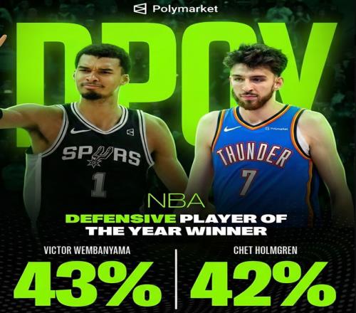 文班亚马本赛季拿到最佳防守球员的概率为43%,而霍姆格伦本赛季拿到最佳防守球员的概率为42%,这两人或许率都会入选最佳防守阵容,甚至两人都会入选最佳一防。