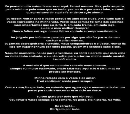 “在深图远虑之后,我决议坦诚地表达我的感受 。”库蒂尼奥写道,“我选择回到瓦斯科达伽马是由于我对俱乐部的热爱 。我热爱这里的一切,甚至凌驾了我已往的一切 。在每一次训练和每一场角逐中,我都全力以赴 。我从未缺乏贡献精神、意愿和责任感 。”