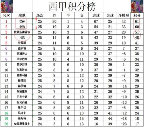 西甲最新积分战报皇马只开心一周!巴萨大胜止颓势重回榜首