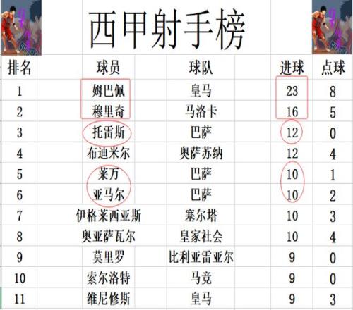 射手榜方面,姆巴佩23球领跑,穆里奇16球排在第2。托雷斯今天替补登场没有进球,照旧和布迪米尔12球并列第3。莱万,亚马尔同样没有进球,依然和伊格莱西亚斯,奥亚萨瓦尔10球并列第5。