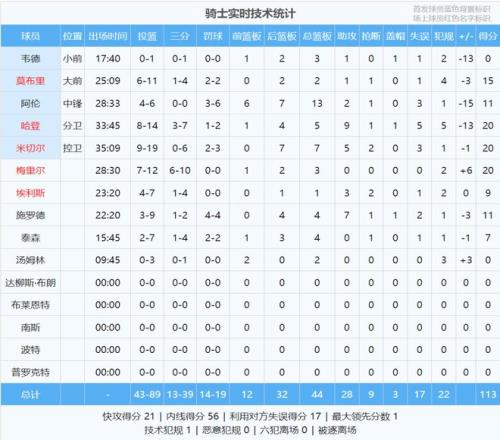 骑士生涯前6场角逐,哈登场均18.7分5板8.7助,投篮掷中率50.7%,三分掷中率47.1% 。米切尔外线失准,今天投篮19中9,三分6中0,罚球3中2,获得20分7板5助2断3失误 。阿伦6中4拿到11分13板2助,正负值-15全队最低 。