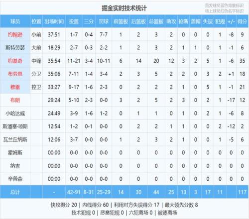 掘金内线得分60-46领先勇士,但掘金三分球只有31中8,三分掷中率25.8%,比勇士少掷中13记三分 。阿隆-戈登和沃特森继续缺阵,卡梅伦-约翰逊和斯特劳瑟投篮合计14中3 。约基奇空砍35分20篮板12助攻,小节2中1仅得3分1板1助 。