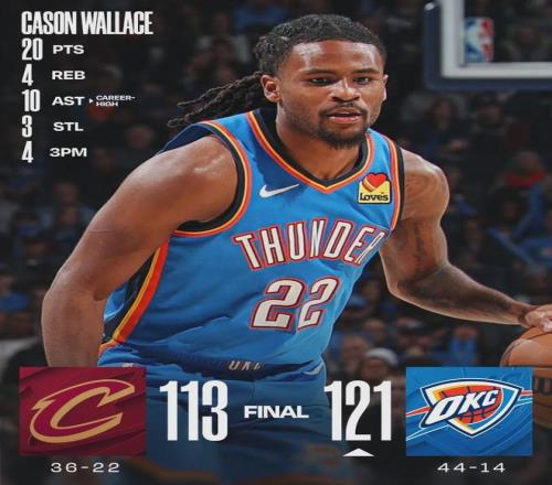 北京时间2月23日,今天早上竣事的两场通例赛:骑士客场113-121不敌雷霆,7连胜被终结;勇士主场128-117逆转掘金 。先说第一场,亚历山大、杰伦-威廉姆斯和卡鲁索等人休战,雷霆二队出战,但他们三分掷中率凌驾五成!