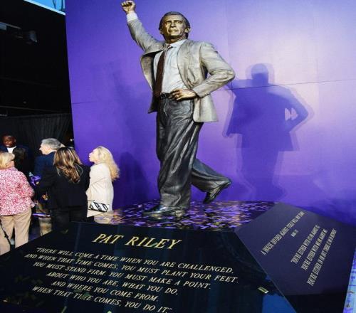 莱利在1981年至1990年执教湖人,带队在1982年、1985年、1987年和1988年四次夺得总冠军 。他成为第八位拥有雕像的湖人传奇,此前获得雕像的是埃尔金·贝勒、科比·布莱恩特、奇克·赫恩、沙奎尔·奥尼尔、杰里·韦斯特、“魔术师”约翰逊和贾巴尔 。