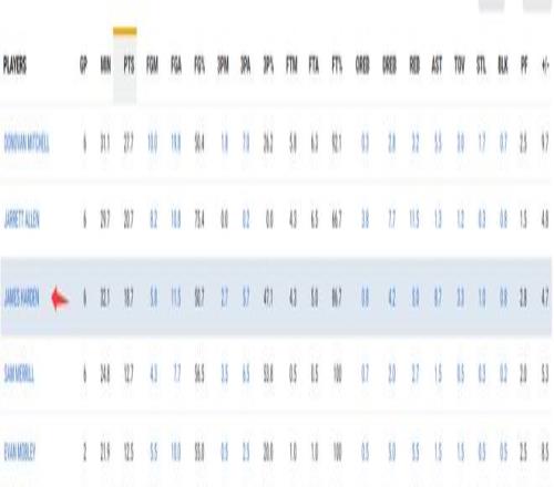 哈登加盟骑士队的6场角逐,场均32.1分钟,拿到18.7分8.7助攻5篮板1抢断0.8盖帽,掷中率50.7%,三分掷中率47.1%,罚球掷中率86.7%,正负值+4.7。