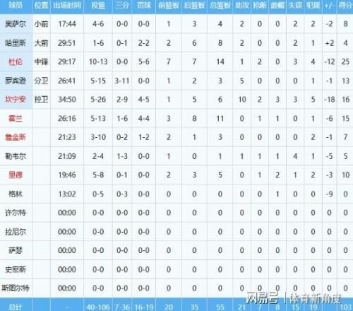 È«³¡½ÇÖð£¬ÎİàÑÇÂí³öÕ½Ô¼36·ÖÖÓ£¬½»³ö21·Ö17Àº°å£¨º¬8¸öǰ³¡Àº°å£©4Öú¹¥6·â¸ÇµÄÖÜÈ«Êý¾Ýµ¥¡£ÔÚ¾ÅÁ¬Ê¤Ê±´ú£¬Ëû³¡¾ùТ˳24.9·Ö12Àº°å3.4Öú¹¥1.3ÇÀ¶Ï3.4·â¸Ç£¬¹¥·ÀÁ½Í·µÄƽºâÌåÏÖʹÆä³ÉΪĿ½ñͬÃËÖÐ×î¾ß¾ºÕùÁ¦µÄÇòÔ±Ö®Ò»£¬ÉõÖÁ¿Éν¶ÀÍÌ÷¡Í·¡£
