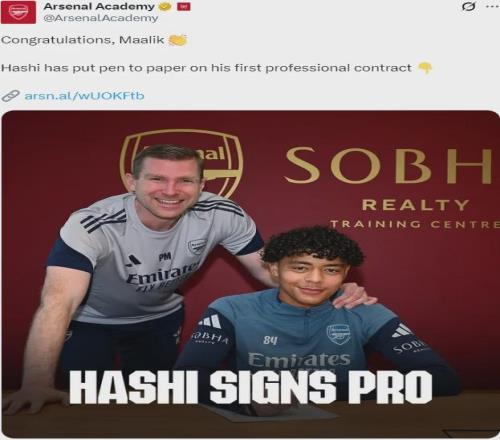 官方:阿森纳宣布马利克-哈希签下了他的第一份职业条约。
