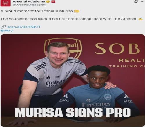 官方:阿森纳宣布和特尚-穆里萨签下了他的首份职业条约。