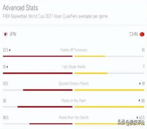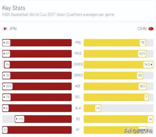 FIBA更新中国队vs日本数据前瞻:场均得分篮板等主要数据完败日本