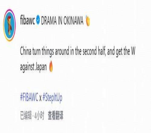 ¸ÃÄÚÈݱ»FIBA¹Ù·½Ðû²¼ÔÚInstagramºÍX˫ƽ̨ÉÏ£¬×èÖ¹ÏÖÔÚ£¬FIBA¹Ù·½ÖÐInstagramÉÏÐÞ¸ÄÁËÎݸ£¬Ð޸ĺóµÄÎݸΪ£º³åÉþÉÏÑݾ«²ÊºÃÏ·£¬Öйú¶Óϰ볡Íê³ÉÄæ×ª£¬»÷°ÜÈÕ±¾¶ÓÄÃÏÂʤÀû¡£¶øXƽ̨ÈÔδÐÞ¸ÄÎݸ¡£