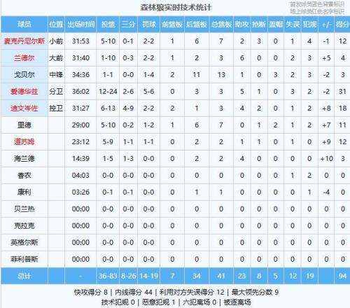 ϰ볡£¬É­ÁÖÀǽø¹¥¶ËÕϰ­£¬¿ËÀï˹¡¤µË¶÷Ò»Á¬¶ÏÇò»¹»÷¼ÓÖú¹¥×ÊÖú¿ì´¬·´³¬±È·Ö£¬°®µÂ»ª×ÈÉÏÀººÍµÏÎÄá¯×ôÈý·ÖֹѪ£¬Èý½Ú¿ì´¬ÁìÏÈ5·Ö£¬Ð¡½ÚÉ­ÁÖÀÇÒ»Á¬ÍâÏß·¢ÅÚÖØÐ·´³¬»ØÀ´£¬¿ì´¬Ê¼ÖÕÄÜҧס±È·Ö£¬Òªº¦Ê±¿Ì°®µÂ»ª×ÈÖÀÖÐÈý·Ö£¬×îÖÕÉ­ÁÖÀÇ94-88ÏÕʤ¿ì´¬  ¡£Õû³¡½ÇÖðÉ­ÁÖÀÇ´òµÃºÜ²î£¬ÐÒ¿÷°®µÂ»ª×ÈÒªº¦Ê±¿ÌÕ¹ÏÖ³¬¾Þ±¾É«Ò»´ÎÖоàÀ룬һ´ÎÈý·Ö̫ӲÁË£¬·´¹ýÀ´¿´Õⳡ½ÇÖðÒ²ÈÃÎÒÃǼûʶµ½Á˿촬µÄ¼áÈÍ£¡