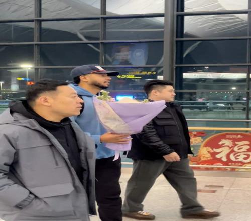 哈维拖着行李,手里捧着一束鲜红的玫瑰,嘴角微扬,眼神轻松。这不是初来乍到的生疏客,而是归家的旧将——他曾在上海征战,现在重返CBA战场,而这一次,他穿上了辽宁的战袍。
