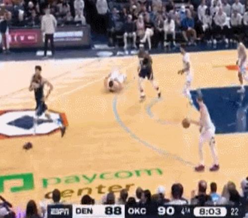 小节多特猖獗使用小行动,铁山靠+扫堂腿直接弄翻了约基奇,后者马上怒不可遏起身开干。