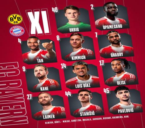 多特vs拜仁:凯恩、格纳布里、莱默尔首发 ,阿德耶米出战