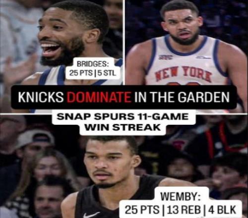 马刺只是文班不讲理,尼克斯全员不讲理。