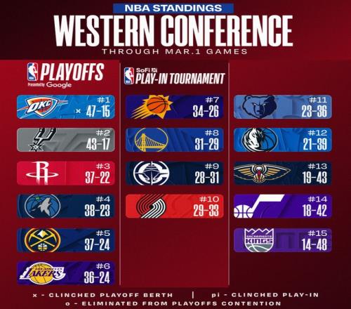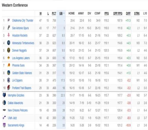 ±±¾©Ê±¼ä3ÔÂ2ÈÕ¹ØÓÚNBAÀ´ËµÊÇ´ó½ÇÖðÈÕ£¬¶à³¡Î÷²¿µÄ½ÇÖð¶ÔÎ÷²¿µÄÃûÌÃÓÖ·ºÆðÁËһЩӰÏ죬ºÃ±ÈÉ­ÁÖÀÇ»÷°Ü¾ò½ðºóÒѾ­ºÀÈ¡ÈýÁ¬Ê¤ÅÅÃûÒ²ÉýÖÁÎ÷²¿µÚËÄ£¬»ð¼ýÕÕ¾ÉÎ÷²¿µÚÈý£¬¿ì´¬»÷°ÜðÃðɺóÔÙ¶ÈÉýµ½Î÷²¿µÚ¾Å ¡£