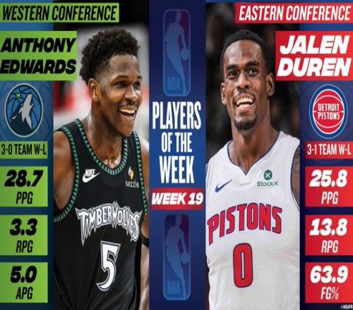 ±±¾©Ê±¼ä3ÔÂ3ÈÕ£¬NBA¹Ù·½Ðû²¼Á˵Ú19ÖܵÄÖÜ×î¼ÑÇòÔ±£¬É­ÁÖÀǵİ®µÂ»ª×ÈÖÐÑ¡Î÷²¿ÖÜ×î¼ÑÇòÔ±£¬ÕâÊÇËû±¾Èü¼¾Ê×´ÎÖÐÑ¡£¬Ò²ÊÇÉúÑĵÚÈý´ÎÖÐÑ¡ ¡£»îÈûµÄ¶ÅÂ×ÖÐÑ¡¶«²¿ÖÜ×î¼ÑÇòÔ±£¬ÕâÊÇËûÉúÑÄÊ״λñµÃÕâÒ»½±Ïî ¡£