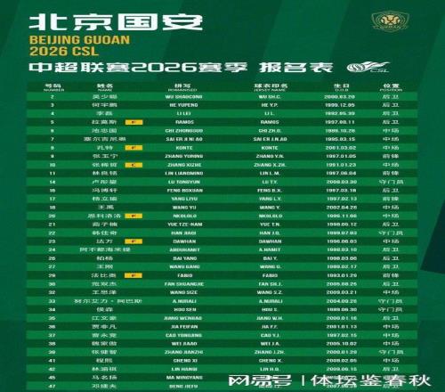 北京时间3月3日下昼,北京国安俱乐部正式宣布了2026赛季一线队的球员报名名单。这份名单中共有47人,其中包括5名外助、1名归化球员和41名本土球员。相比上赛季的阵容,这一次的名单显着带着储备名额的意味。