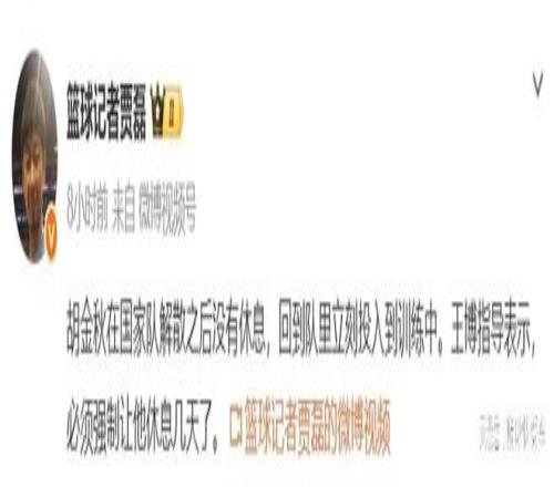 ÄÐÀºÊÀÔ¤Èü¿¢ÊÂÒÔºó£¬Öйú¶ÓÒѾ­Ë³Ëì·µ»Ø£¬´ø×ÅÁ½Á¬Ê¤µÄϲÔã¬Öйú¶ÓÇòÔ±ÖÕÓÚ¿ÉÒÔÔÝʱÐÝÏ¢Ò»ÕóÁË ¡£ÓÉÓÚ¾àÀëCBAµÚ¶þ½×¶Î¿ªÈüÉÐÓÐһС¶Îʱ¼ä£¬Öйú¶ÓÇòÔ±Ò²ÓÐÁËһС¶ÎÃû¹óµÄÐÝϢʱ¼ä ¡£µ±´ó²¿·ÖÇòÔ±¿ªÆôÐÝϢģʽʱ£¬ÓÐÒ»Ãû¹úÊÖÈ´ÒѾ­×îÏÈѵÁ·ÁË ¡£´Ó¹ú¼Ò¶Ó»ØÀ´ÒԺ󣬺ú½ðÇï·ÅÆúÁËÐÝÏ¢µÄʱ¼ä£¬±ãÂíÒ»Ö±ÌãµÄÓë¹ãÏûãºÏ£¬Ñ¸ËÙͶÈëµ½±¸Õ½µ±ÖÐÈ¥ ¡£²»¹ý£¬ÕâÒ²ÈùãÏÃÖ÷½ÌÁ·Íõ²©ÐÄÌÛ»µÁË£¬ËûÖ±½Ó¼±ÁËÌåÏÖ£¬ÒªÆÈÁîºú½ðÇï¶àÐÝÏ¢¼¸Ìì ¡£