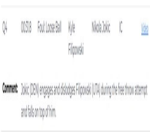 第二次是错判,终场前31.8秒,穆雷执行罚球,约基奇与菲利波夫斯基爆发身体接触并将其推开,随后压在对方身上。裁判其时吹罚了菲利波夫斯基无球争抢犯规,给了约基奇一次罚球时机。但裁判报告显示,这个吹罚是一次错判,本该吹约基奇犯规。由于约基奇其时已经身背5次犯规,若是裁判吹罚准确,他本该被罚下。这次错判爵士亏损,掘金赚钱。