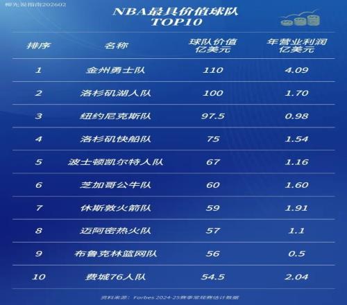 NBAÇò¶ÓÄê¶È׬ǮÍõ£ºÇò¶Ó¹ÀÖµ110ÒÚÃÀÔª £¬ÄêÀûÈóÏ൱ÓÚÁ½¸öºþÈË