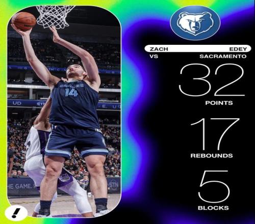 其中对阵国王的角逐,伊迪还打出了生涯之夜,全场只出战了不到30分钟,投篮20中16,0三分0罚球,获得32分17篮板5盖帽,这也是他生涯第一次得分30+ 。