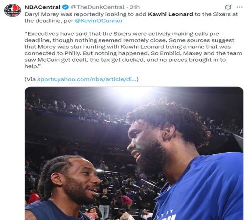 凭证凯文-奥康纳的新闻,费城在生意阻止日前曾试图引进伦纳德,只惋惜最终快船并没有生意伦纳德的妄想。