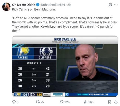 北京时间3月5日,快船130-107大胜步行者拿到三连胜。这场角逐是一场毫无悬念的角逐,快船首节就领先17分,虽然第二节步行者赢回5分,可第三节快船一波39-26直接将步行者打崩,小节伦纳德都没有登场。
