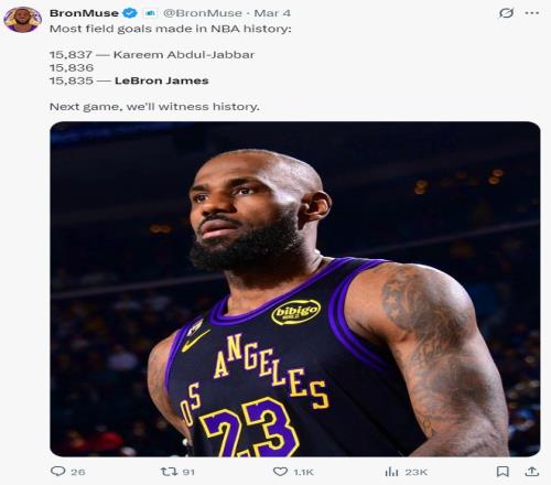 除此之外詹姆斯运动战进球已经15835个 ,他距离贾巴尔的15837个只差2个 ,距离凌驾贾巴尔只差3个 ,下一场角逐就能凌驾乐成成为历史第一。