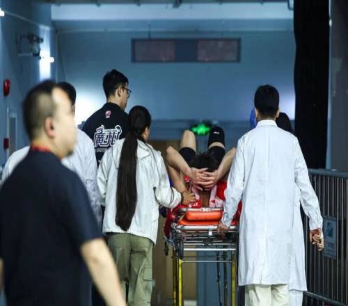 只是现在在一场补赛当中 ,郭艾伦在对阵山东的第四节角逐 ,他在一次快攻上篮对抗后 ,不幸落地时左膝受伤。郭艾伦其时痛苦捂着受伤的部位在地板翻腾 ,且还用力拍打地板极为痛苦 ,随后被担架车给抬下场。