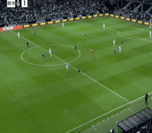 第11分钟,皇马开出战术角球,居莱尔倒三角传中,琼阿梅尼无人盯防,推射击中立柱,弹进球门。