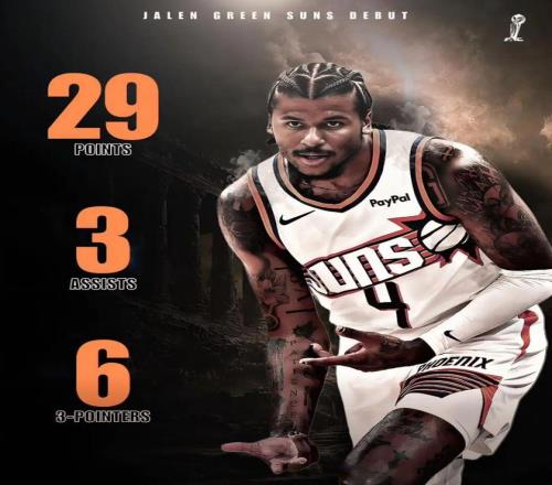 需要说的是,杰伦格林的首秀着实很是惊艳,其时太阳115-102战胜快船,杰伦格林全场只打了23分钟时间,投篮20中10,三分13中6,罚球5中3,拿下29分3篮板3助攻2抢断,正负值高达+30。
