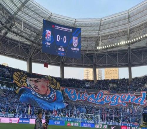 对阵大连英博赛前,申花主场打出巨型TIFO致敬于汉超