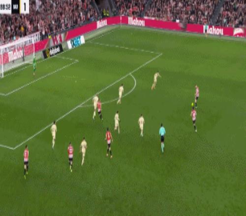 第68分钟 ,佩德里送出斜塞 ,亚马尔内切兜射破门!毕包0-1巴萨