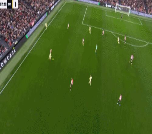 第6分钟 ,亚马尔送到后点 ,费兰跟进横传反弹到门前被解围