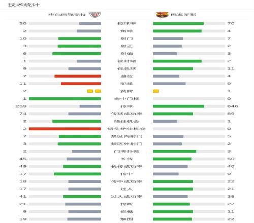 北京时间3月8日西班牙足球甲级联赛第27轮 ,毕尔巴鄂竞技主场对阵巴塞罗那 。上半场 ,坎塞洛刚开场解围击中横梁 ,戈麦斯脚踝扭伤离场 ,伊尼亚基低射破门被判越位进球无效;下半场 ,佩德里助攻亚马尔内切兜射破门 。最终比分毕尔巴鄂竞技 0-1 巴萨 。