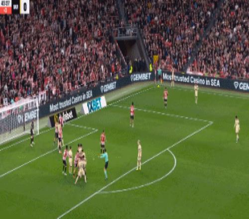 第40分钟 ,霍安-加西亚出击抱球 ,拉波尔特抢点与其相撞后前空翻倒地