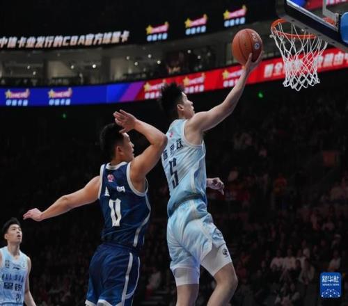 3月7日,CBA星锐队球员陈家政(右)在角逐中突破上篮。新华社记者 孟永民 摄