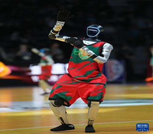 3月7日,人形机械人在角逐间隙演出。新华社记者 孟永民 摄