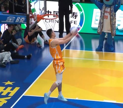 ÕŶ¦ÑÒ½ø³¡£¬ÊÂÇéְԱͷ¶¥ÄÃÇò£¬ÕŶ¦ÑÒ±¼ÌÚ²¢¶áÇòÍê³É·ç³µ¿ÛÀº£¬»ñµÃ50·Ö¡£