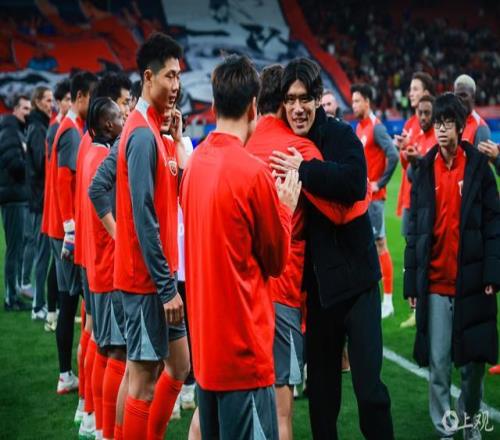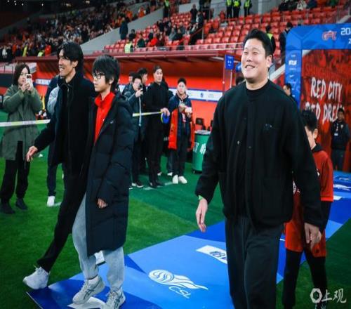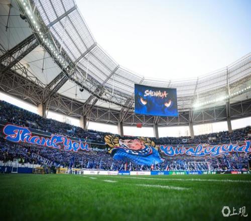 赛前,上海体育场看台展出巨型TIFO,向不久前退役的宿将于汉超致敬,时势感人。